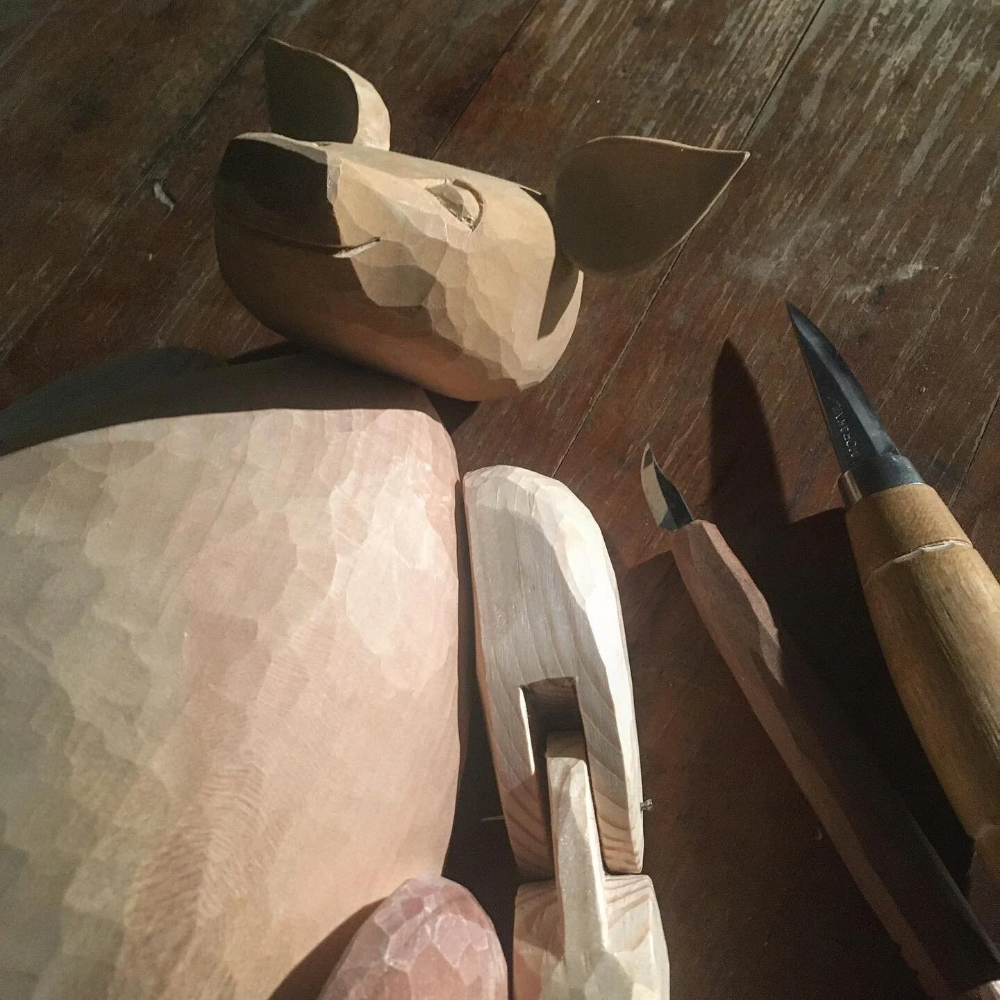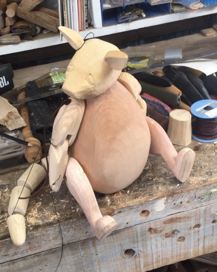 I became a puppet maker by chance. A love of woodcraft, play and old ways came together when stumbling on the work of Italian Pinocchio maker, Francesco Bartolucci, who gives life to his puppets with simple tools. I picked up my knife and axe, and a piece of wood, and then something magic emerged.